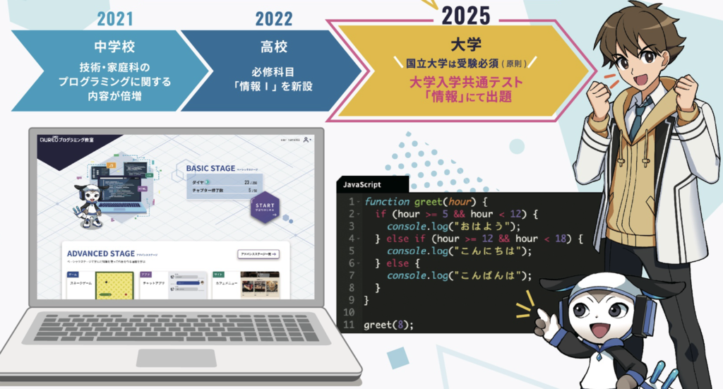 本コースではゲームなどのWebアプリを作成し、自分が入力したテキスト(プログラミングコード)で画面の見た目や動作が変わるので、ワクワク楽しみながらプログラミングを学べます。